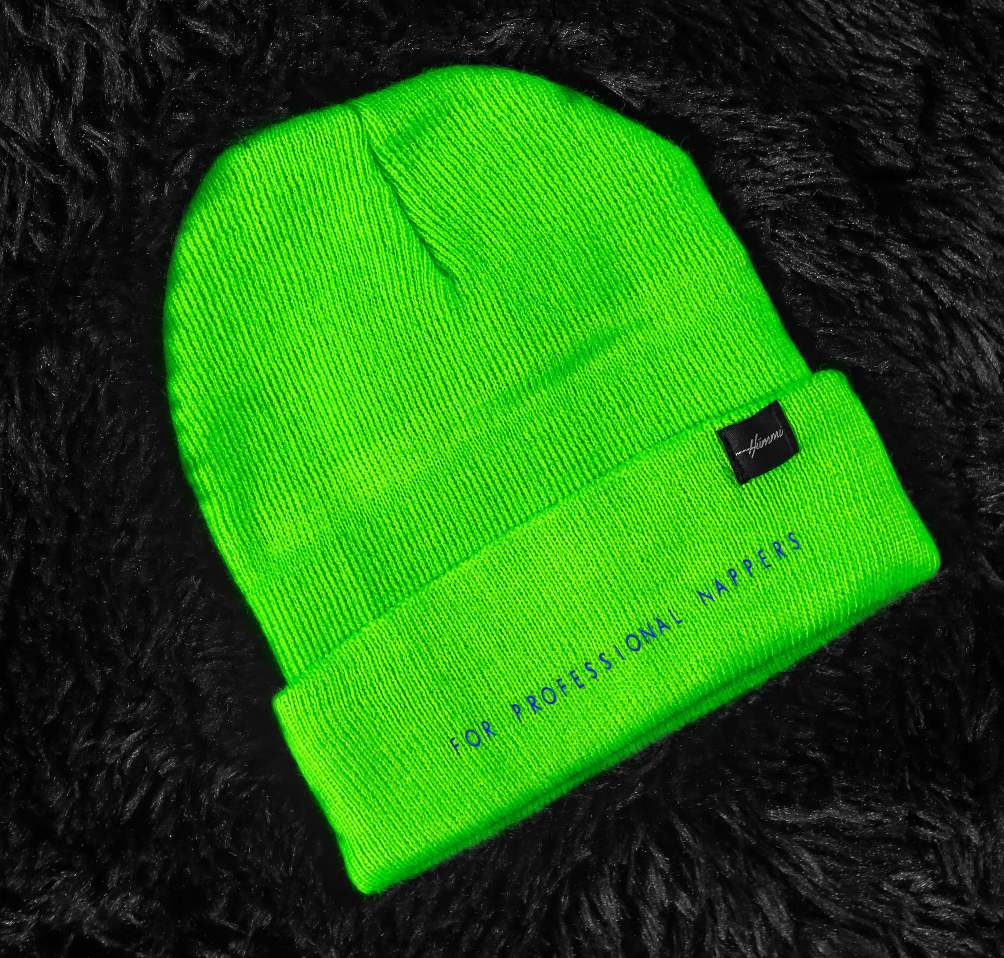 ESTE HÜMMI BEANIE SE CARACTERIZA POR SER SUAVE Y CÁLIDO. ADORNADO CON UN ESTAMPADO DISTINTIVO DE SER UN «PROFESSIONAL NAPPER» Y UNA PEQUEÑA ETIQUETA BORDADA CON NUESTRO LOGO.